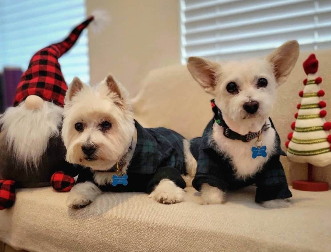 Collins & Cooper! They are Westies who I've had for most of my life. They are extremely social but can be a little bit demanding when it comes to scratches.